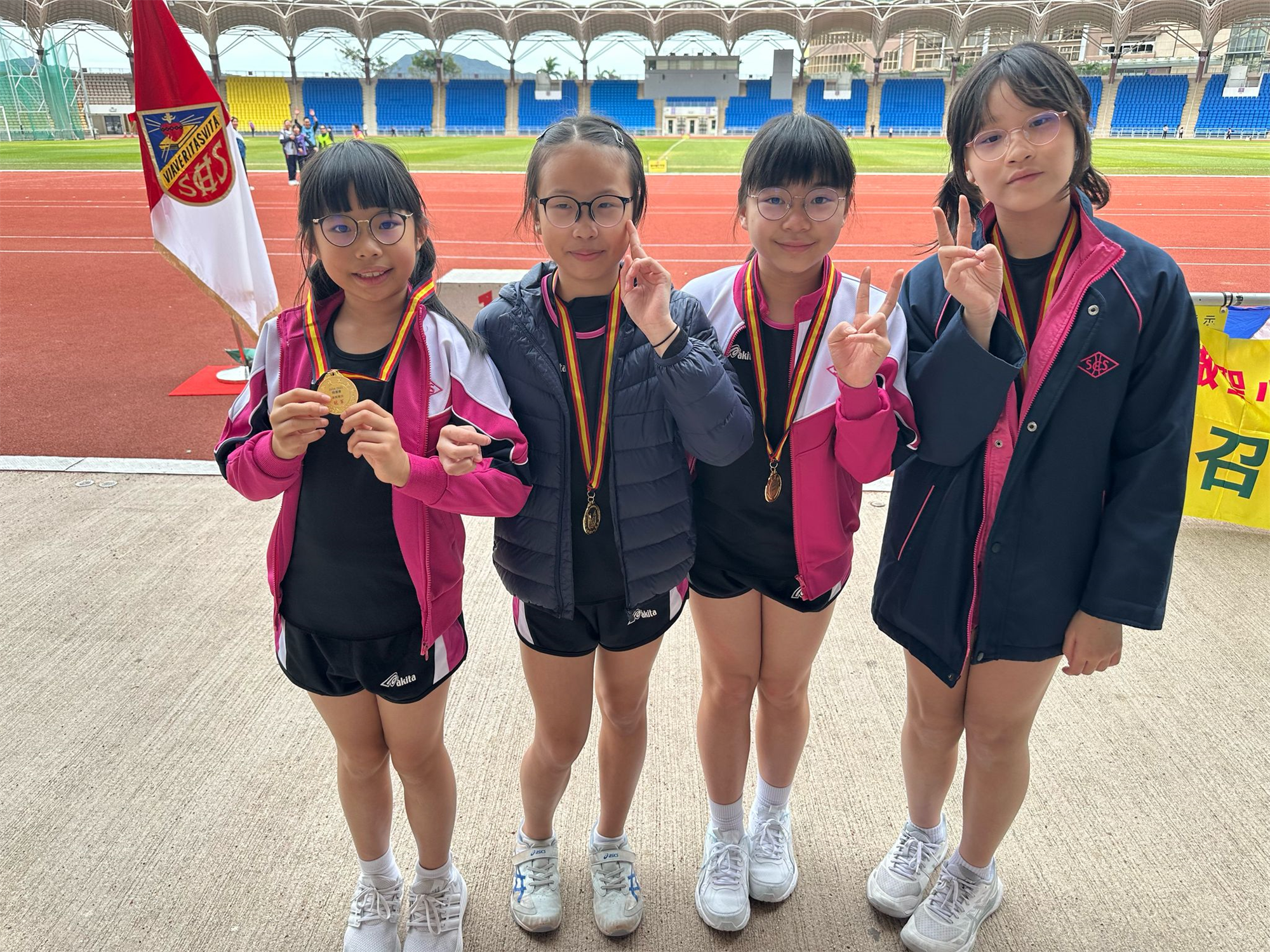 2025年2月7日 (星期五),我校四位田徑校隊同學獲嘉諾撒聖心學校邀請,於小西灣運動場參加其陸運會之「4 × 100米友校接力賽」。她們與其他6間屬會學校的隊伍進行了精彩的比賽,而我校同學更在比賽中表現出色,獲得了冠軍的好成績。希望同學今後繼續努力,再創佳績!